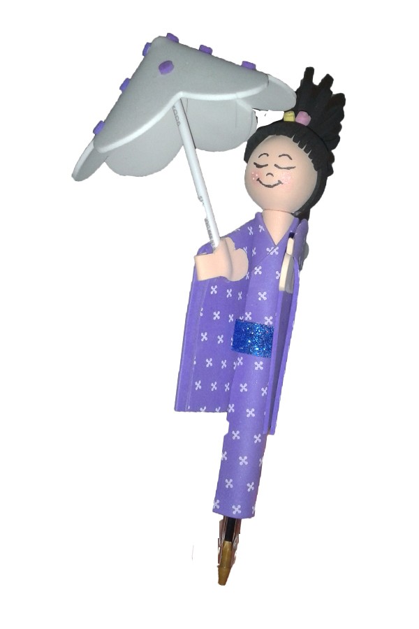 Precioso bolígrafo en forma de geisha. Puedes personalizarla como quieras. Ideal para tu escritorio, tu despacho...